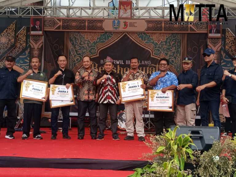 Sertifikat penghargaan diberikan langsung oleh Kepala Bakorwil III Malang Asep Kusdinar kepada Ketua Tim Lomba Inovasi Blue Green Pengelolaan Lingkungan Hidup Dinas Lingkungan Hidup Kota Malang Budi Heriyanto dalam puncak gelaran Bakorwil III Bersholawat yang dihelat di halaman kantor Bakorwil III Malang, Jalan Simpang Ijen No 2 Kecamatan Klojen Kota Malang. Minggu (1/11/2024).