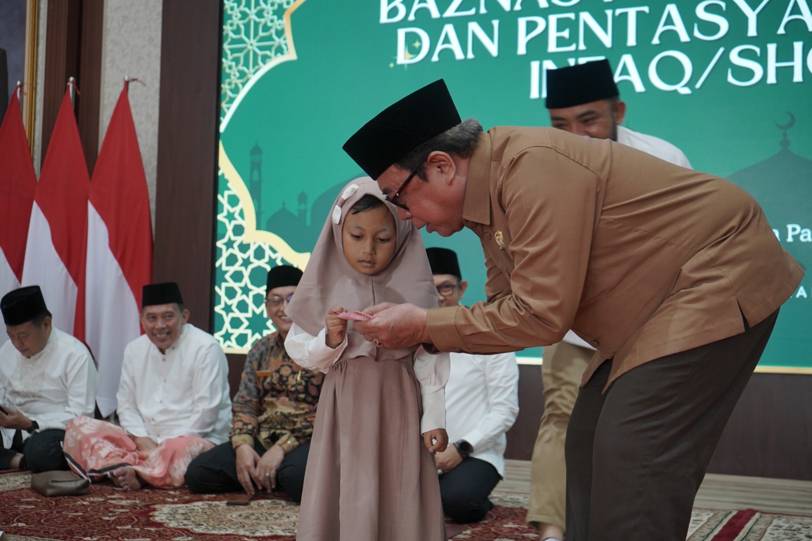 MALANGPOINT.COM | Kota Batu – Badan Amil Zakat Nasional (Baznas) Provinsi Jawa Timur kolaborasi dengan Baznas Kota Batu menggelar kegiatan Safari Ramadan dan Pentasyarufan Zakat, Infaq, Shodaqoh kepada 500 anak yatim di Graha Pancasila, Balai Kota Among Tani, Kota Batu, Rabu (5/3/2025).