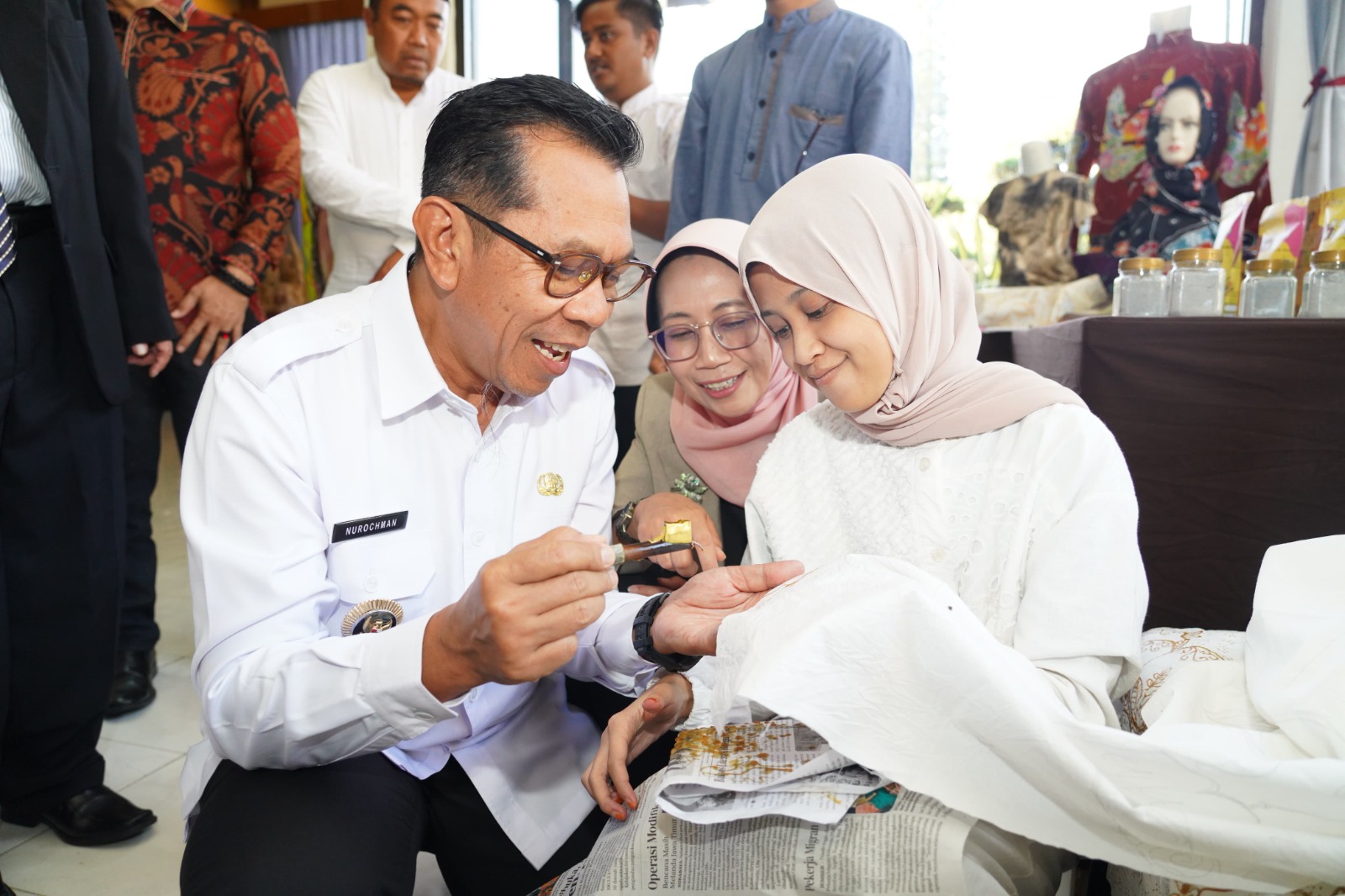 Selanjutnya Wali Kota beserta rombongan meninjau langsung pameran kerajinan seni dan produk UMKM seperti batik, kopi jalan pulang, keset kaki, dan lain sebagainya yang diproduksi oleh Unique EM Diffable Indonesia, Persatuan Tuna Netra Indonesia KWB, dan SLBM dan SLB Eka Mandiri Kota Batu.
