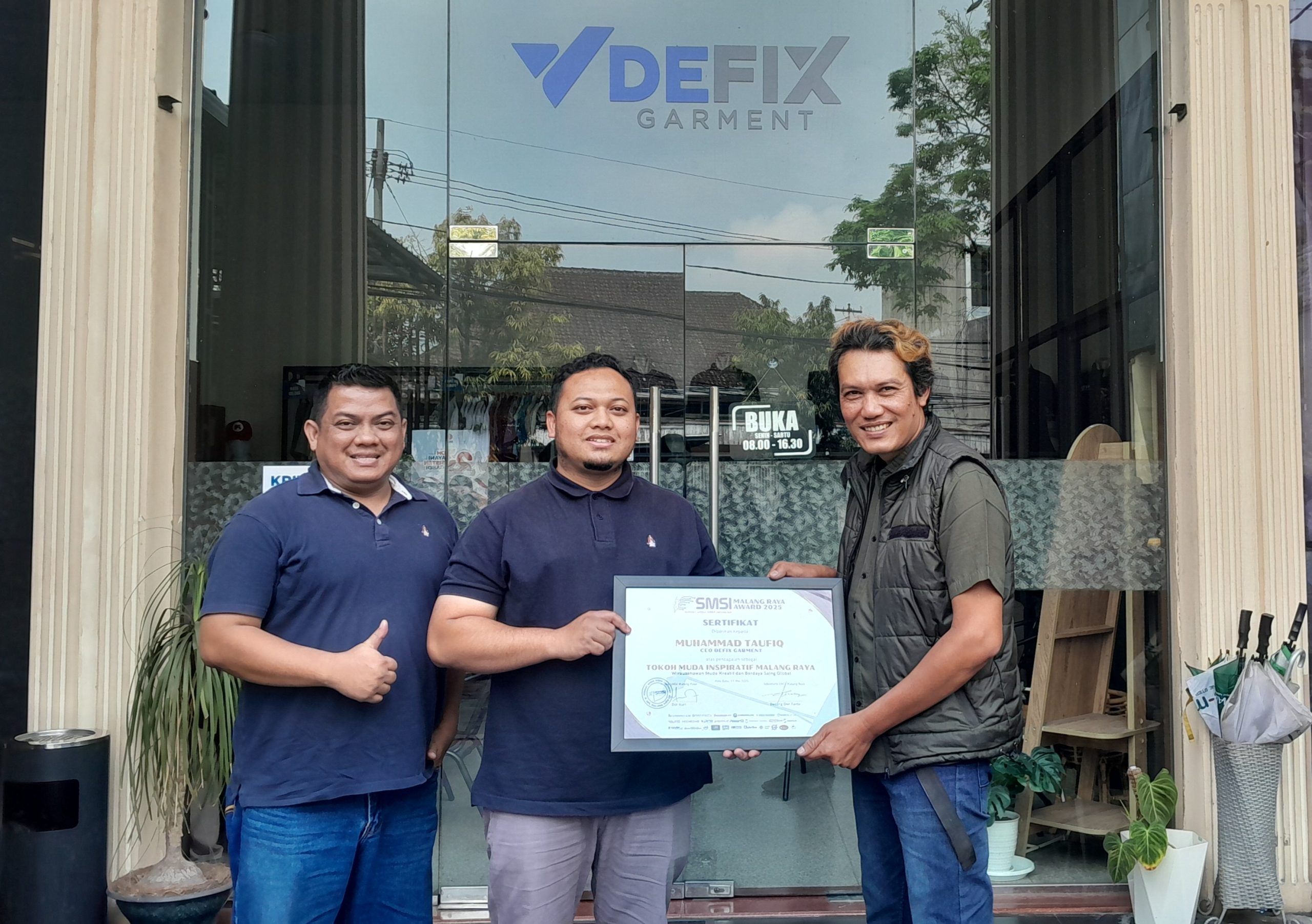 MALANGPOINT.COM | MALANG – CEO Defix Garment, Muhammad Taufiq, menerima penghargaan Tokoh Muda Inspiratif Malang Raya dari Serikat Media Siber Indonesia (SMSI) Malang Raya.