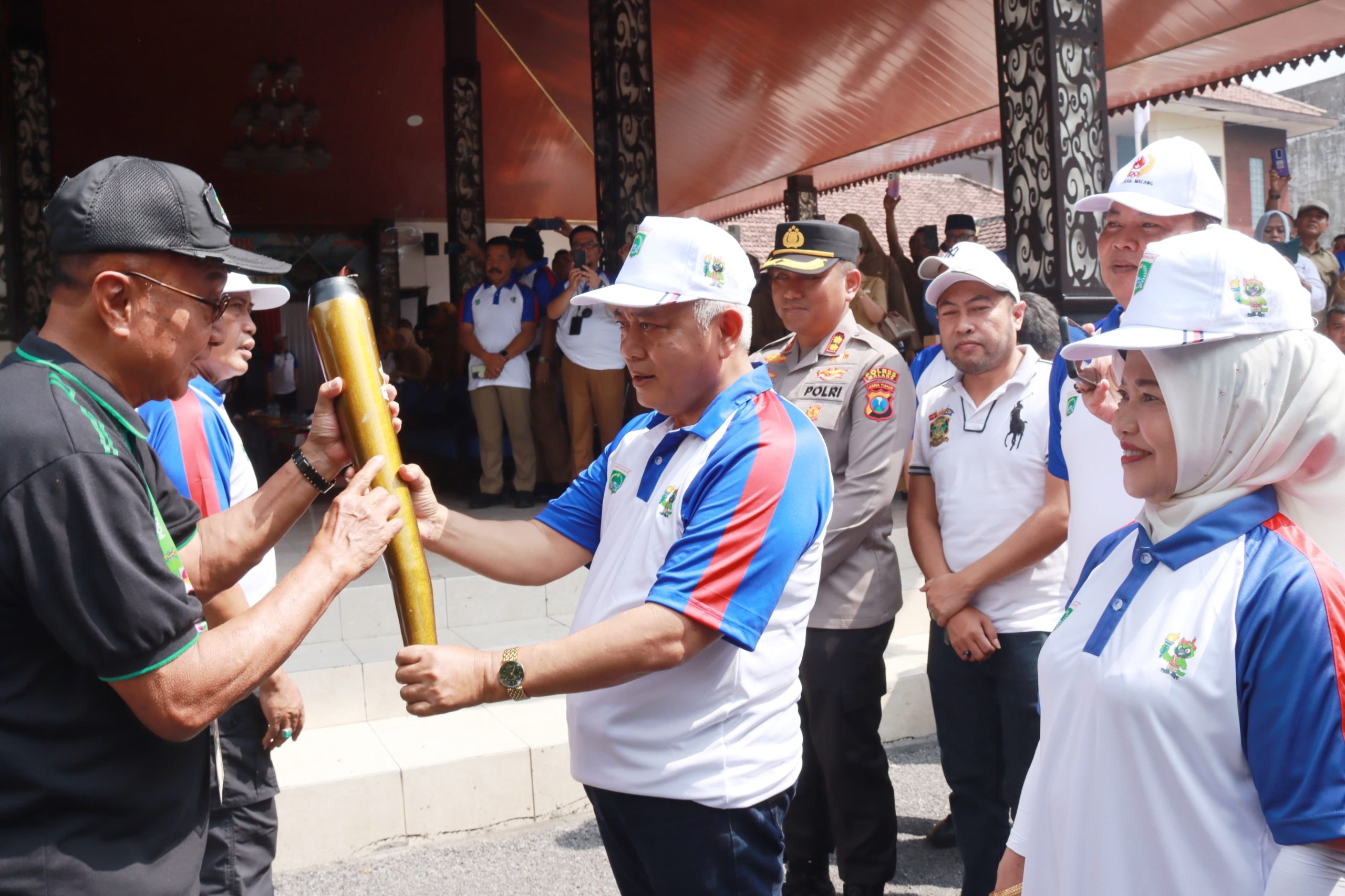 MALANGPOINT.COM | MALANG – Bupati Malang, Drs. H. M. Sanusi, M.M didampingi Wakil Bupati Malang Dra. Hj. Lathifah Shohib menerima Api PORPROV IX Jawa Timur Tahun 2025, dari KONI Provinsi Jawa Timur kepada Kabupaten Malang di Gerbang Kabupaten Malang, tepatnya di Kantor Kecamatan Lawang pada Senin (23/6/2025) pagi.