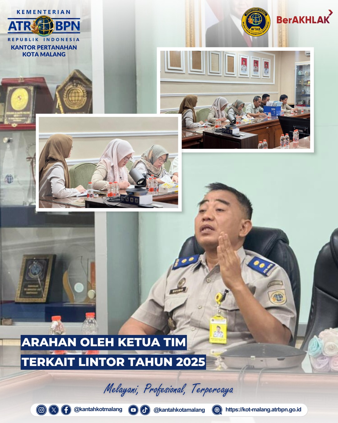 MALANGPOINT.COM | Pada hari Senin (27/10/2025). Kantor Pertanahan Kota Malang mengadakan rapat koordinas (Rakor) bersama lintas sektor (Lintor) membahas kelancaran dan tertib administrasi pelaksanaan kegiatan Sertipikat Hak Atas Tanah Non Sistematis Kategori 5 Tahun Anggaran 2025.