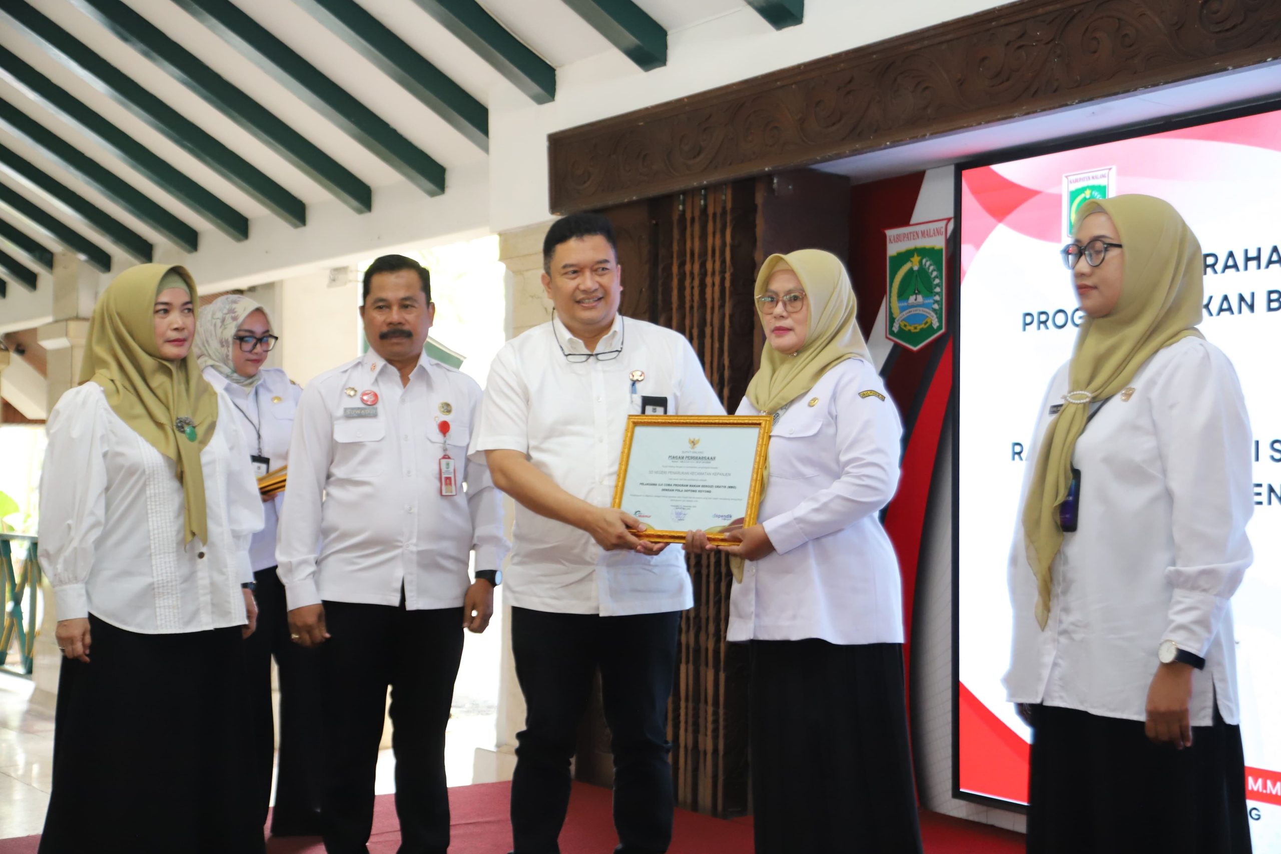 Penghargaan diserahkan langsung Sekretaris Daerah Kabupaten Malang, Dr. Ir. Budiar, M.Si yang mewakili Bupati Malang, Drs. H. M. Sanusi, M.M dallam Rapat Koordinasi Sinergi dan Optimalisasi Program Makan Bergizi Gratis Menuju Kabupaten Malang Zero Keracunan, di Pendopo Agung Kabupaten Malang, Rabu (26/11/2025).