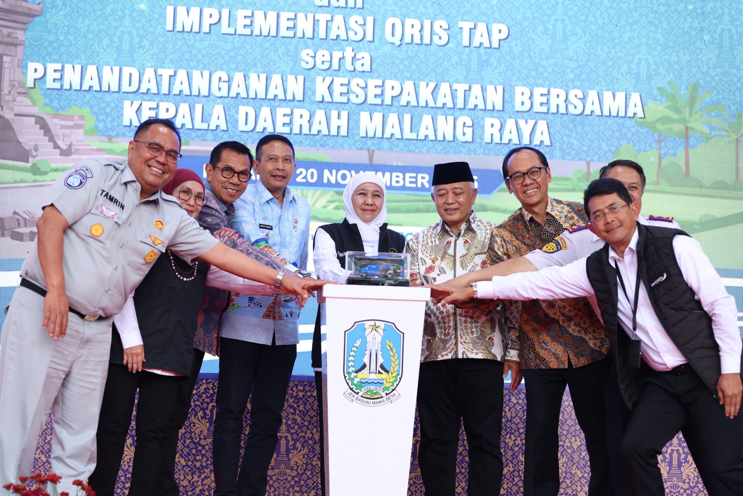 Selain peresmian Bus TransJatim juga malaksanakan Implementasi Qris Tap serta penandatangan kesepakatan bersamaTiga Kepala Daerah Malang Raya yaitu Wali Kota Malang, Wahyu Hidayat, Bupati Malang H.M Sanusi dan Wali Kota Batu, Nurochman.
