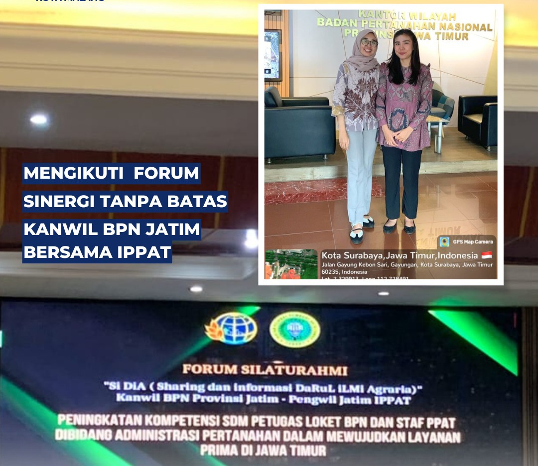 MALANGPOINT.COM | Dalam rangka meningkatkan kualitas pelayanan publik, Kantor Wilayah BPN Provinsi Jawa Timur berkolaborasi dengan Pengurus Wilayah Ikatan Pejabat Pembuat Akta Tanah (IPPAT) Jawa Timur, gelar Forum Sharing dan Diskusi Peningkatan Kompetensi SDM.