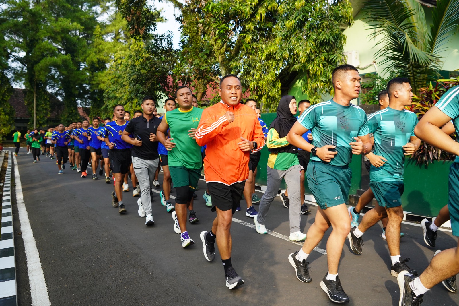 Di tengah barisan, Pangdivif 2 Kostrad Mayjen TNI Primadi Saiful Sulun, S.Sos., M.Si., ikut berlari, menyatu dengan para taruna dan prajurit.